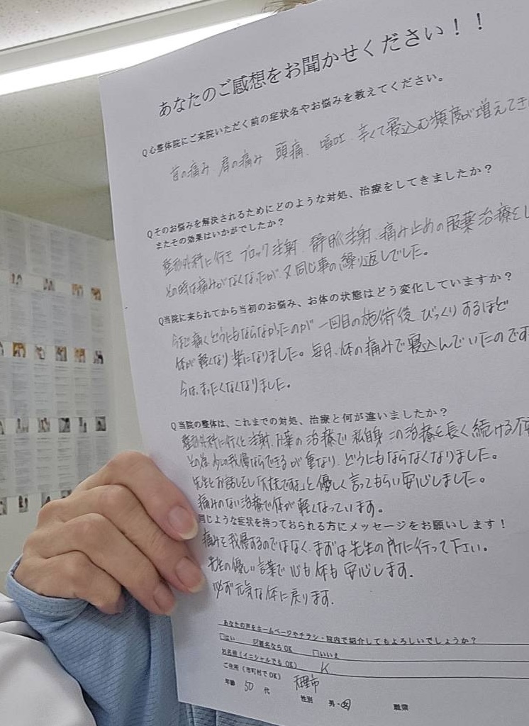 病院や他院で治らないと諦めている方も、多くの方が改善に向かうので、喜びの声を多く頂いております。